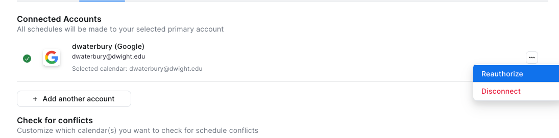 4. Over to the right side of your account, you'll see 3 dots. Click on those. Then Click "Reauthorize".